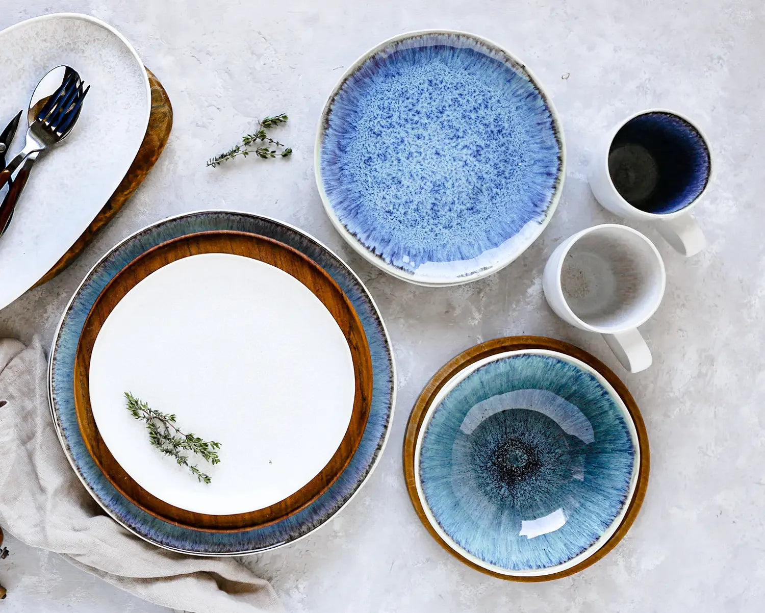 Das Geschirr besteht aus hochwertigem Steinzeug – einer robusten, dichten Form der Keramik, die langlebiger als herkömmliches Steingut ist.