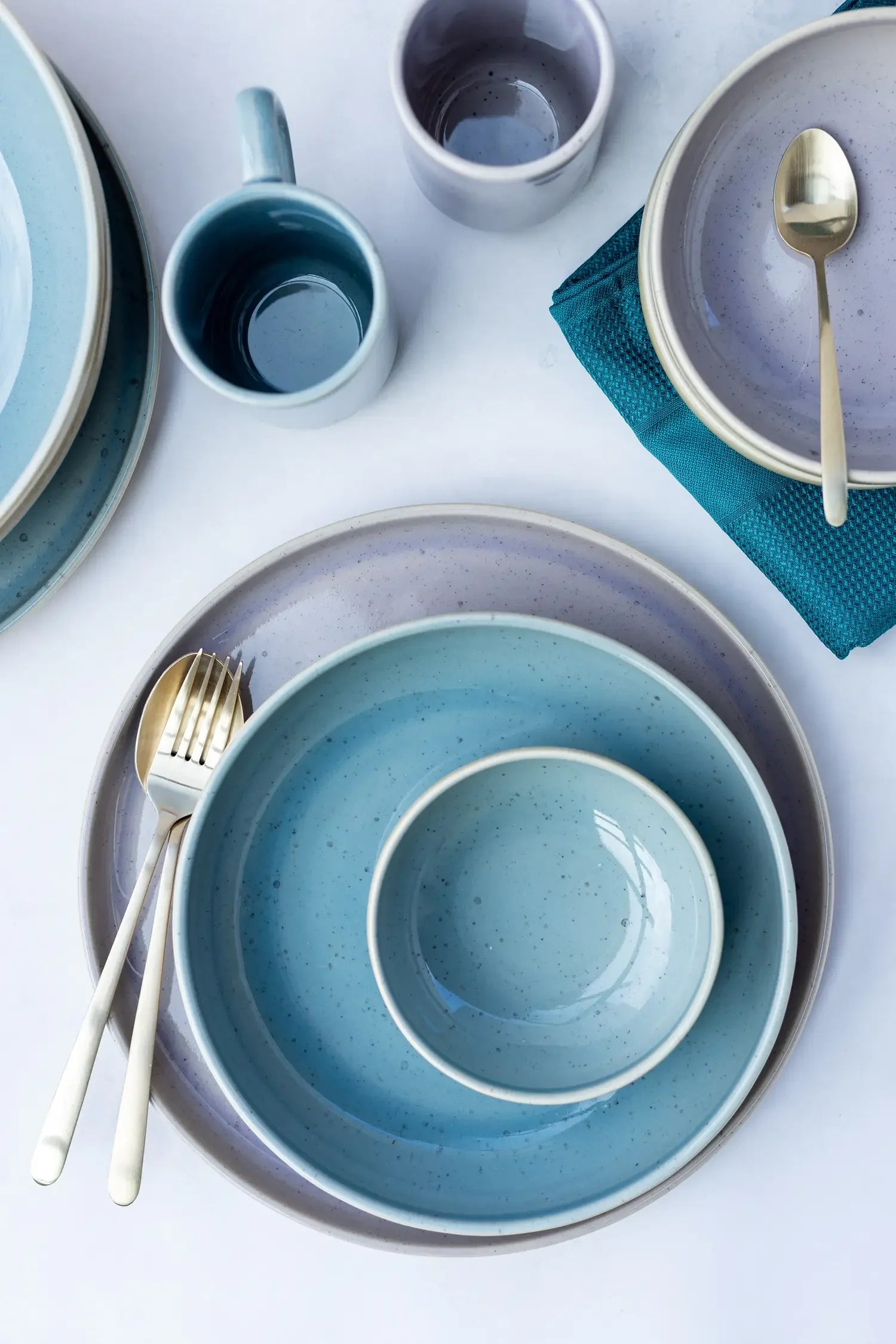 Das Geschirr ist in der Farbe Flieder erhältlich – handgefertigt in Portugal mit natürlichen Reaktivglasuren, die jeden Ton lebendig wirken lassen.