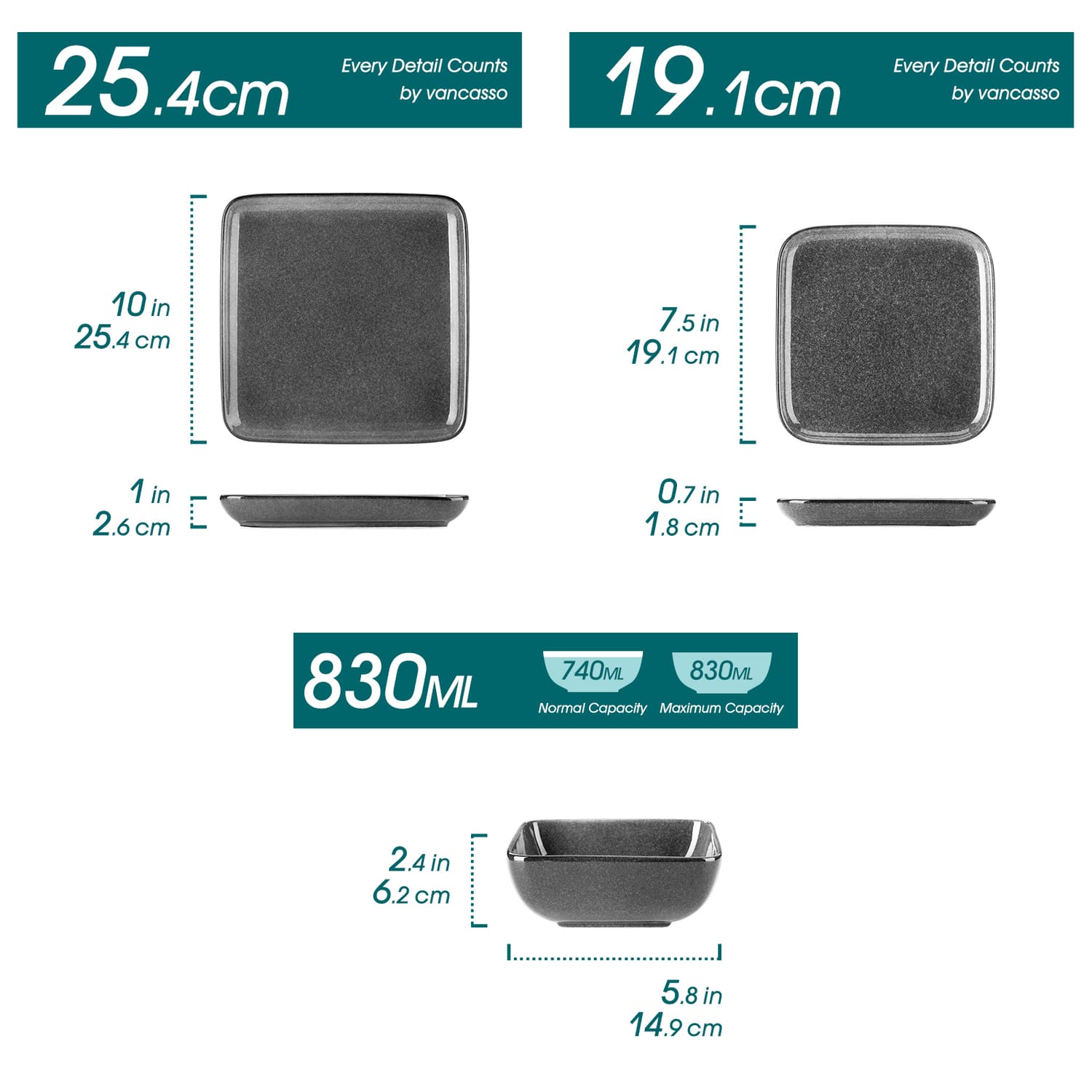 "Color square" Kollektion | 12/24/36-tlg. Geschirr Set | Grau | Steingut
