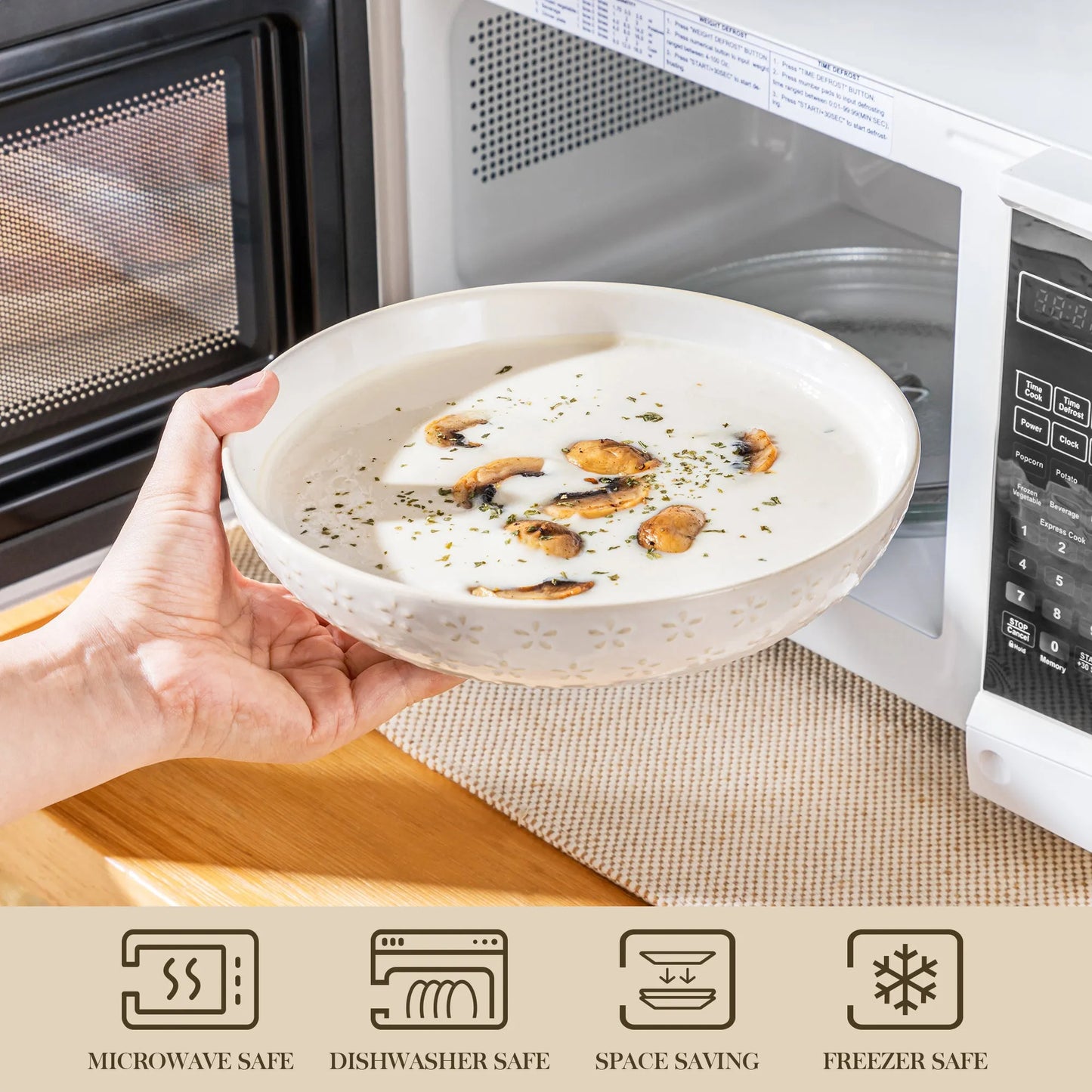 Bringen Sie mit der "Zen" Kollektion in Weiß eine harmonische und stilvolle Atmosphäre auf Ihren Esstisch. Dieses hochwertige Steingut-Geschirr vereint minimalistisches Design mit kunstvollen Prägungen. Wählen Sie zwischen den einzigartigen Mustern Blumenblatt und Bienenwabe, die jedem gedeckten Tisch eine exklusive Note verleihen.